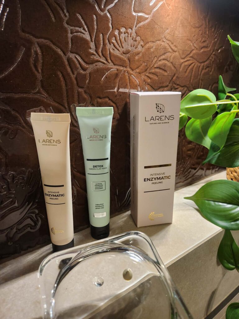 Po jakimś czasie wprowadziłam jeszcze dodatkowo do mojej pielęgnacji raz na tydzień peeling i maskę detox. Stosuję nazmiennie, nie na raz. Bardzo wydajne kosmetyki wystarczą na kilka tygodni. Świetnie uzupełniają pielęgnację. Nie jest to konieczne bo kosmetyki i tak zrobią swoje, tyle że może szybciej bo jednak oczyszczą dzięki czemu lepiej wchłaniają się kremy serum itp