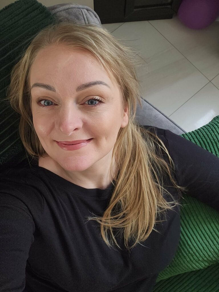 Tak wyglądam teraz bez makijażu. Cera wyciszona, odżywiona. Nie ma aktywnych zmian trądzikowych. Po nałożeniu makijażu czuję się komfortowo… o tym następny wpis!